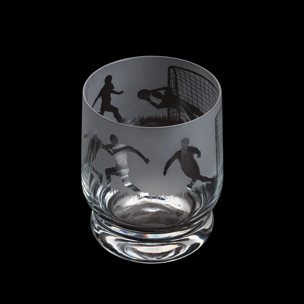 A football themed tumbler that would make the perfect gift for any fan of the game. This decorated glass features a detailed 360-degree etched frieze of football action which is wrapped around the rim of the glass. It is part of a gifting range that captures best-loved themes including the animal world, British wildlife, sports and country life. Dishwasher safe and supplied in an attractive gift box.
