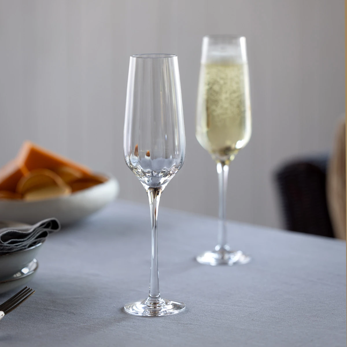 Celebrate in style with the Aurea Flute Set of 2, handcrafted from 24% lead crystal. The tall, slender design is perfect for Champagne, Prosecco, and sparkling wines, while the optic detailing adds brilliance and sparkle to every sip. Balanced, elegant, and presented in premium gift packaging, these flutes make an exquisite gift or the perfect addition to celebratory occasions.
