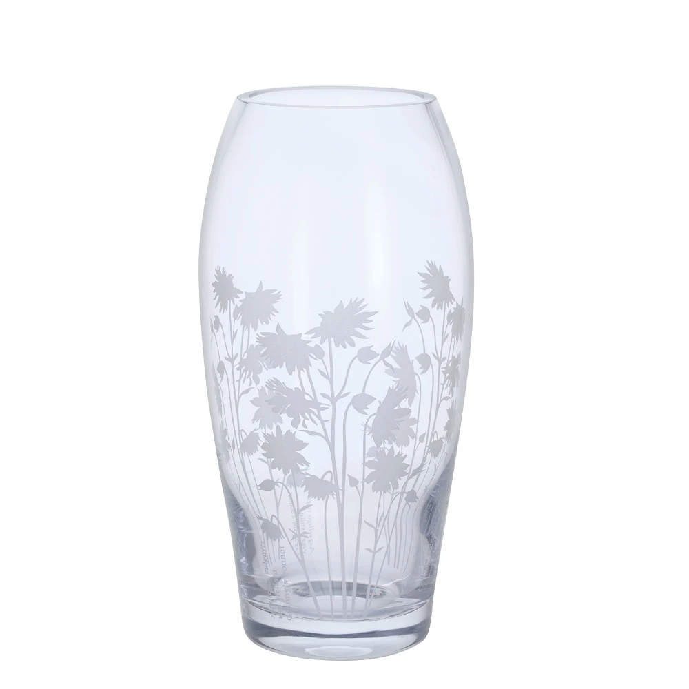 Bloom is a collection of lovely hand-made vases, each elegantly finished with an etch-decorated bloom. The Barrel Vase features delicate Aquilegia and a tall curving profile which tapers towards the rim. With or without flowers this vase makes an attractive addition to the home and is a great gift idea.