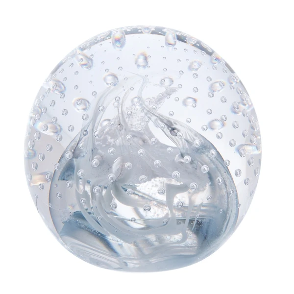 Commemorate life’s special moments with this unique paperweight. Silver glass swirls burst with joyous energy inside a wall of tiny bubbles. Makes for a thoughtful gift or inspiring decorative accent.