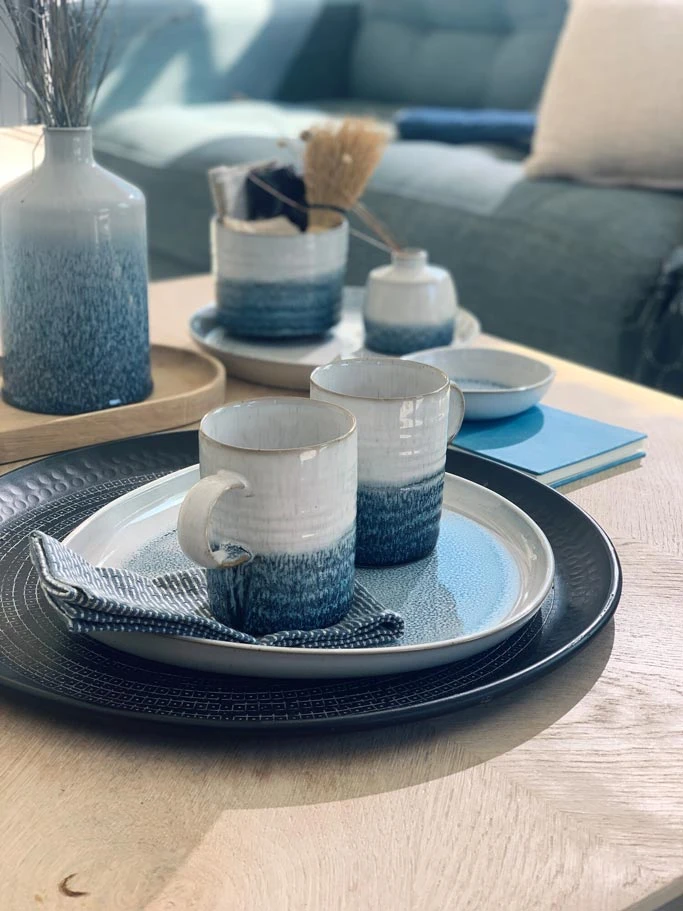 Inspired by the colours and textures found in the natural world Kiln Blue is a combination of uniquely Denby glazing techniques used to echo the movement and multi-faceted tones of waves. A collection designed to sit comfortably together in an on trend inky blue colourway or alone as capsule items designed for the way you live.