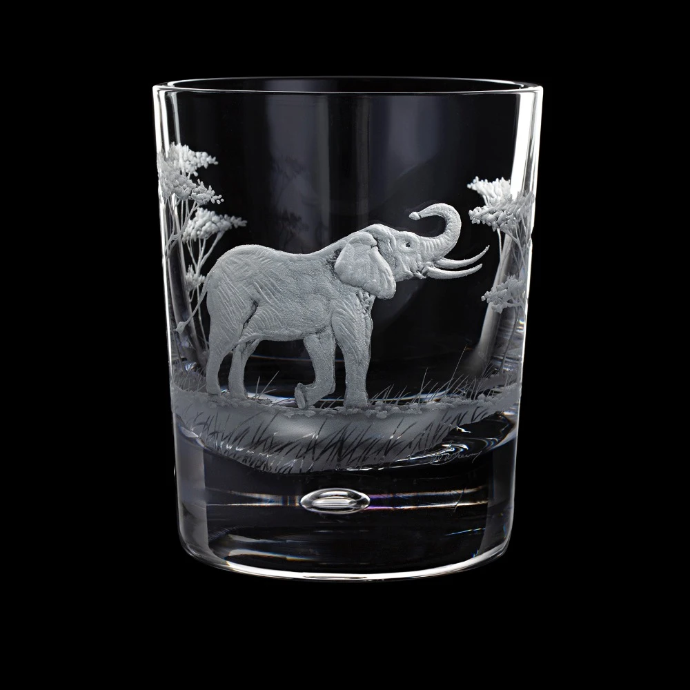 Elevate whisky sipping occasions to a new level of luxury with this stunning crystal tumbler. Expertly crafted and hand-engraved by master engraver Nick Davey, the majestic wildlife scene featuring an elephant makes it ideal for adventurous nature lovers. Indulge in these exquisite moments!