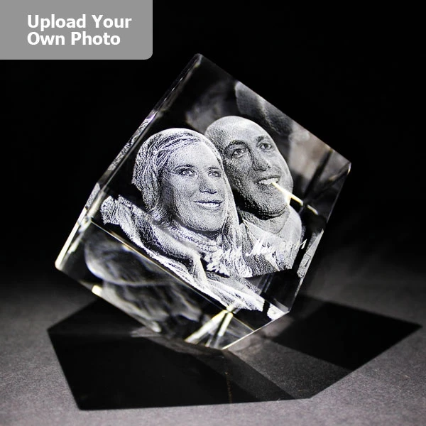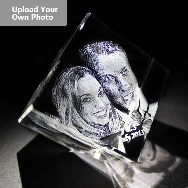 Cherish precious moments in a Crystal Keepsake. Our bespoke crystal gift engraving service, can capture your 2D photos and convert them into 3 dimensional gift block forever. Our Diamond style crystal is an ideal shape for couples. It makes the perfect gift for anniversaries and weddings. It looks great as it sits at an angle to display the image.Â