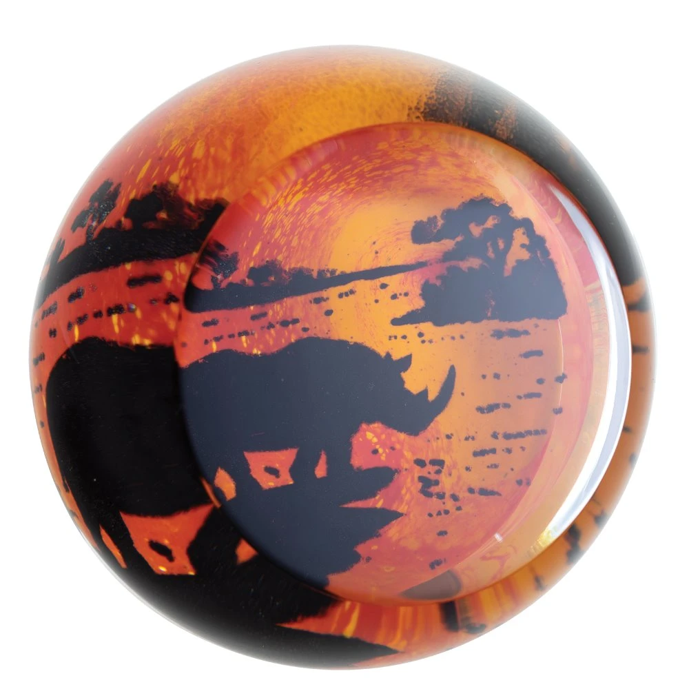 Shaping the African landscape, the powerful Rhino grazes by the marsh looking for food.